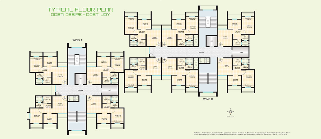 Matt finish ceramic tile flooring in all toilets, Concealed plumbing of standard brand, C.P brass fittings, Ceramic tiles dado upto beam bottom, Sanitaryware of standard make, Instant water geyser with hot – cold mixer, Toilet doors with laminate finish, Mirror above wash basin.