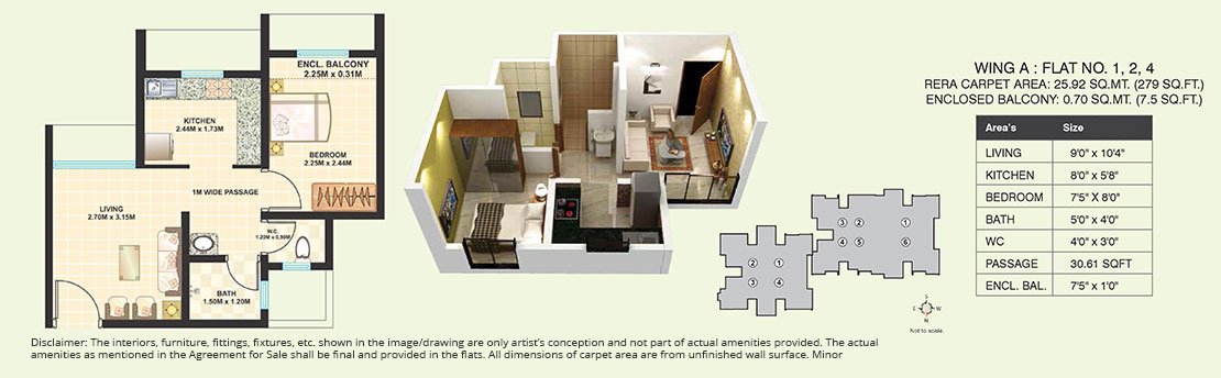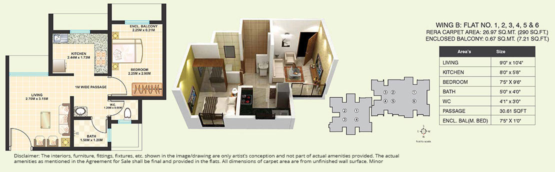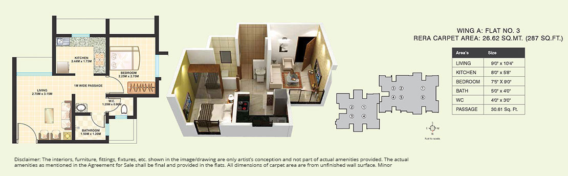 Electrical wiring & fitting of concealed type P.V.C conduit – good quality copper wire, All switches of standard make, One ELCB per flat & MCB for each room, TV, telephone, internet point, ceiling fan point & regulator in living room and bedroom.